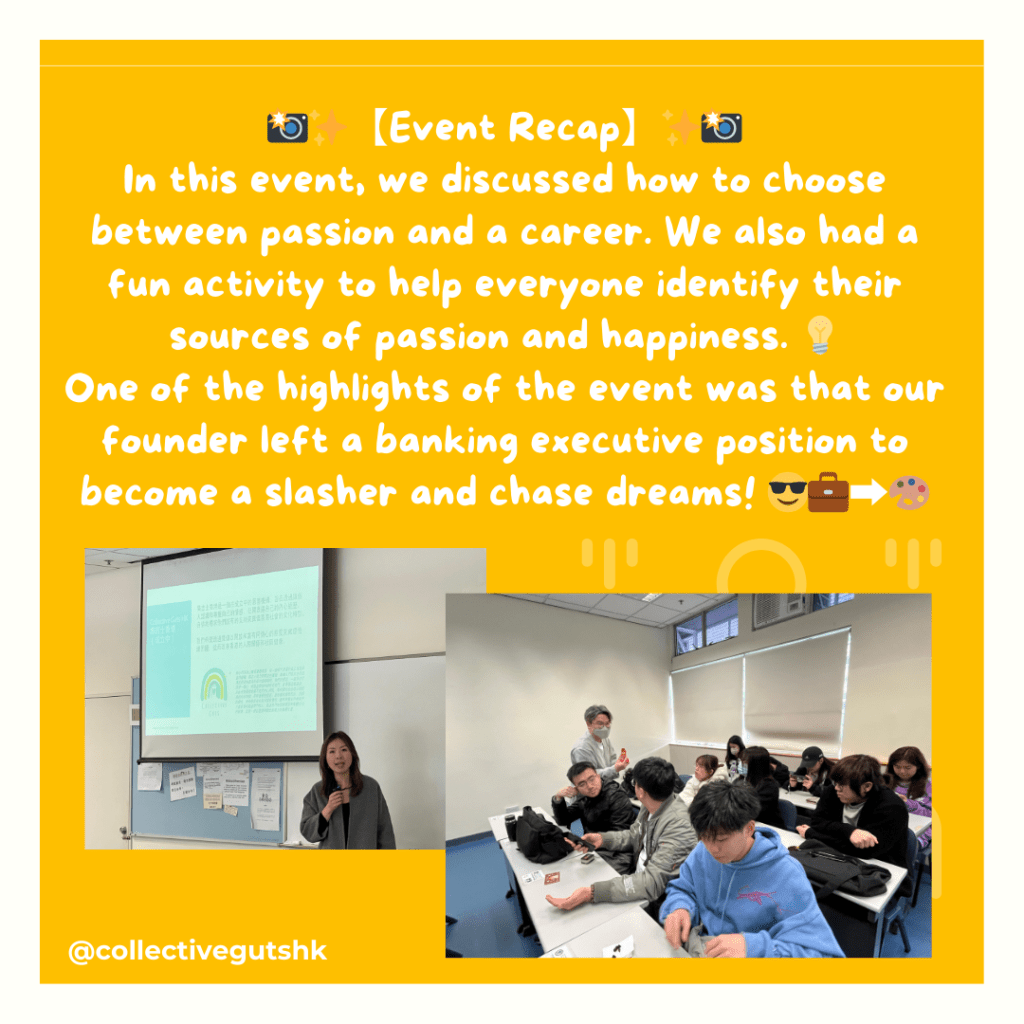 In this event, we discussed how to choose between passion and a career. We also had a fun activity to help everyone identify their sources of passion and happiness. 💡