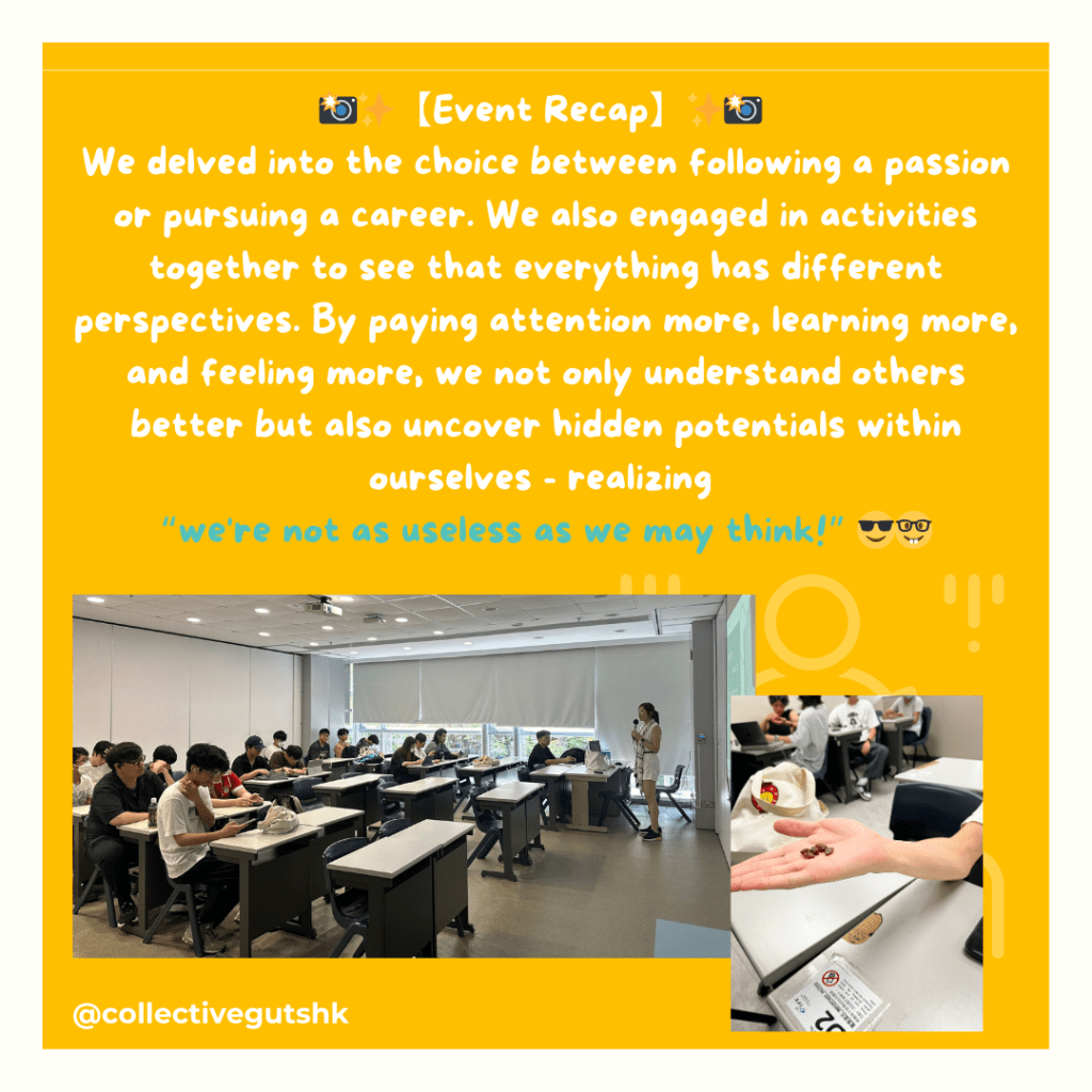 We delved into the choice between following a passion or pursuing a career. We also engaged in activities together to see that everything has different perspectives. By paying attention more, learning more, and feeling more, we not only understand others better but also uncover hidden potentials within ourselves – realizing “we’re not as useless as we may think!”