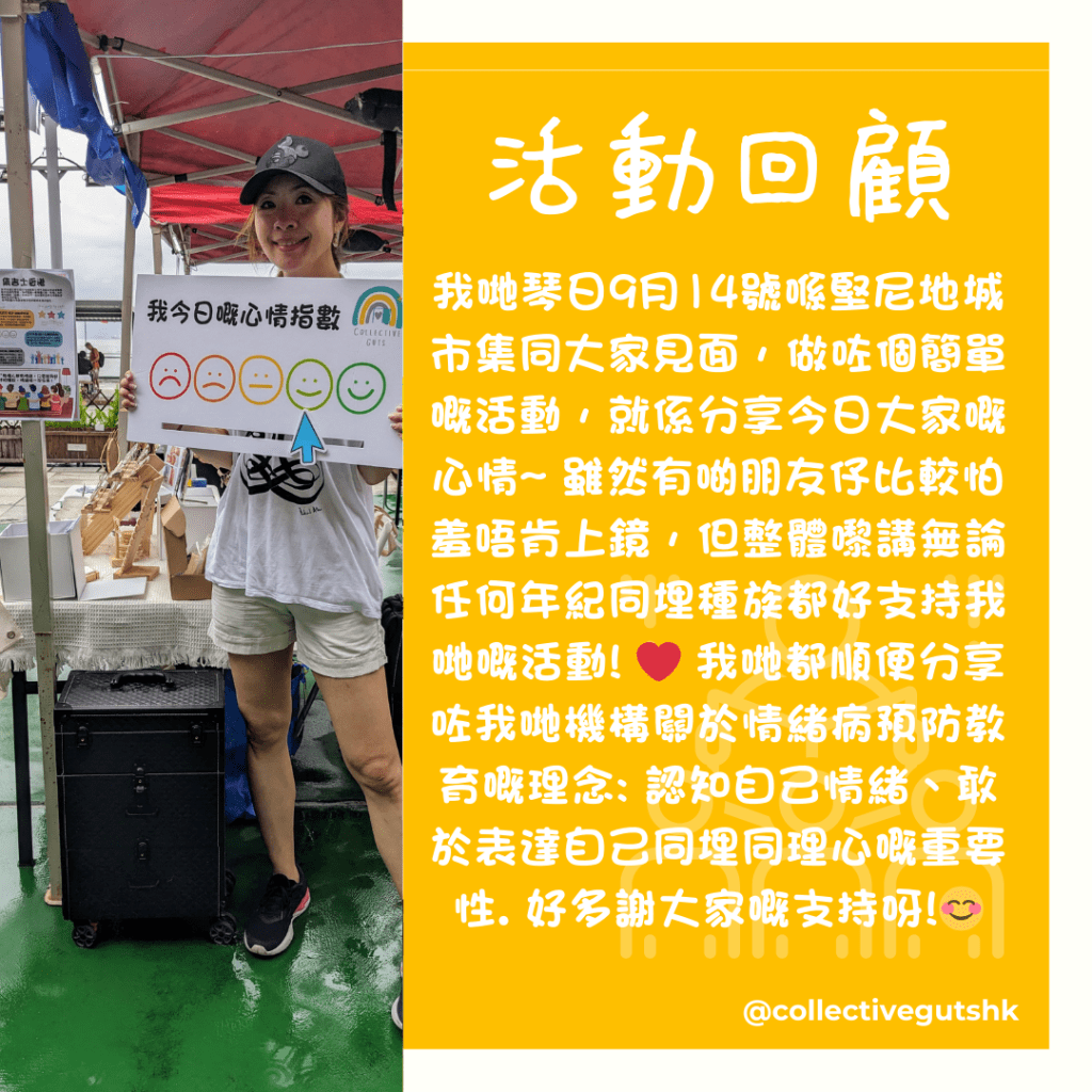 We had an outdoor event at Kennedy Town Market on September 14th. It was all about sharing our mood for the day. Some were shy, but almost everyone, no matter their age or background, was super supportive! ❤️