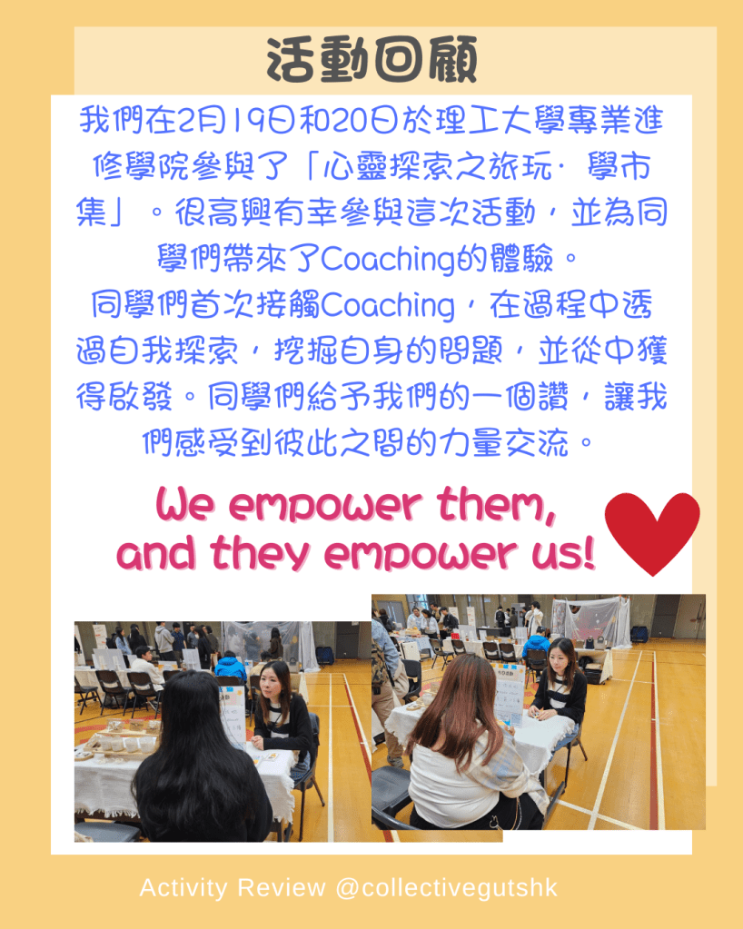 For many students, it was their first time encountering coaching. Through the process of self-exploration, they were able to uncover their own challenges and gain valuable insights. The students’ positive feedback gave us a sense of the powerful exchange of energy between us.